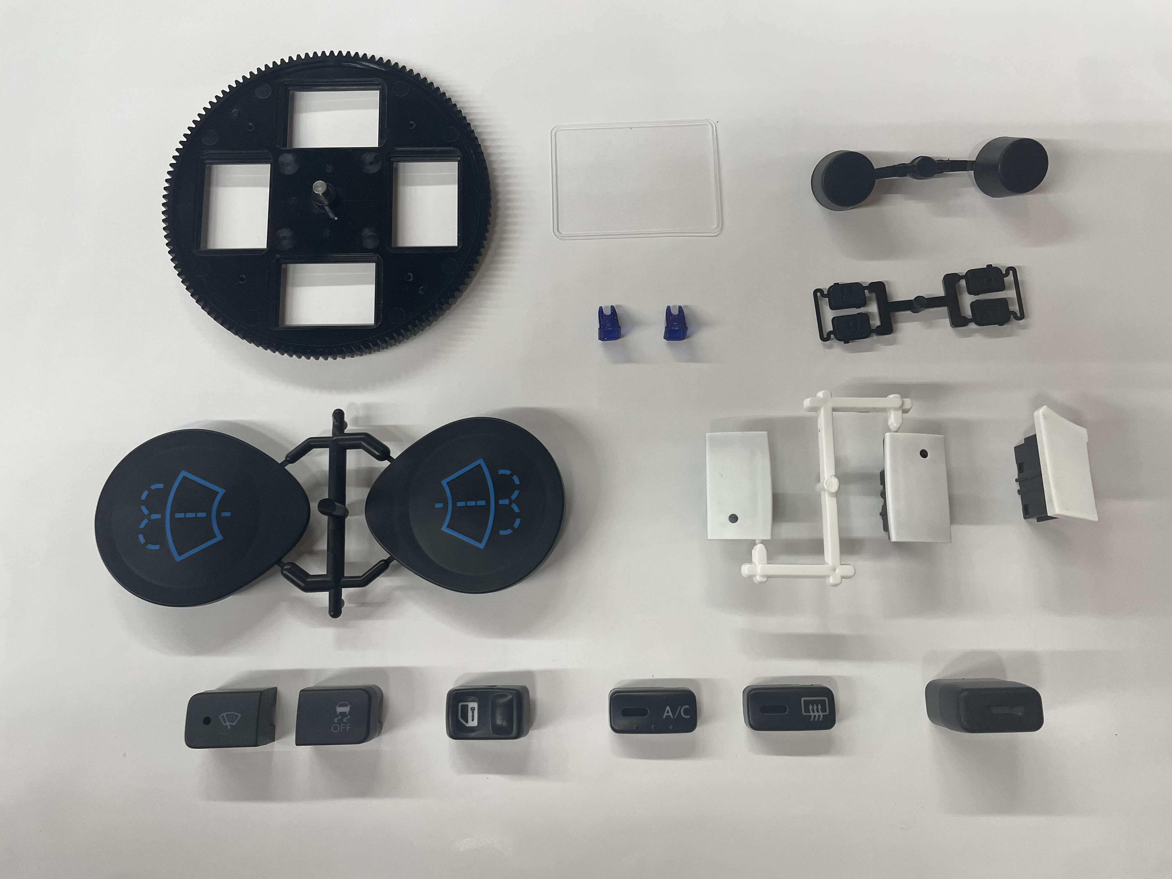 一般射出成型・二色成型他・エラストマー・PTX等、軟質材も実績あり。協力工場にて金型の設計、製作から、成型、仕上げまで一貫した対応も可能です。試作、小ロット、短納期も柔軟に対応いたしますので、まずはお気軽にお問合せ下さい。